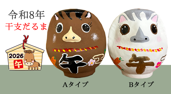 2026年 令和8年の干支は午年ですね。当店オリジナルの干支だるま午年(馬・うま)はとても人気商品です